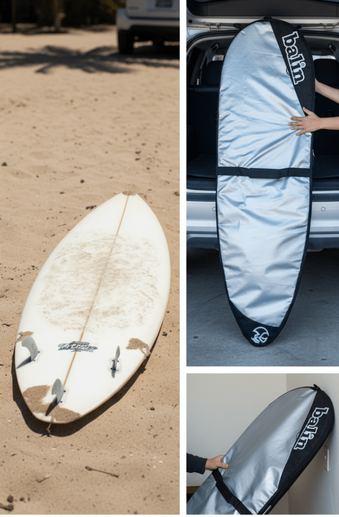 No subestimes el daño que la cera derretida puede causar. Una buena funda mantiene la cera en su lugar, evitando que se ensucie con arena o que manche el interior de tu auto. Es una forma sencilla de mantener todo más limpio y ordenado, protegiendo tanto tu tabla como tu vehículo.